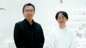 A-POC ABLE ISSEY MIYAKE의 미야마에 요시유키와 유진 스튜디오의 사메카와 히로토가 빛과 그림자 작품에서 영감을 받은 협업 배경을 논하다.